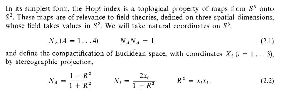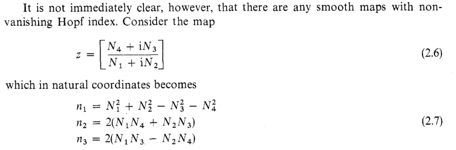 求助大佬们,如何理解hopf map,例如图3和图4中为什么要用SU2中的两个复数相除,图3中是怎么通过z转换N和n。 图1-3来自J. Phys. G 4, 1363 (1978)。 图4来自J. Math. Phys. 51, 122305 (2010)。 另外,我不是数学系的,请大佬们用通俗一点的语言回答,谢谢! 1.png 2.png 3.png 4.png |