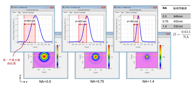 通过瑞利判据对显微镜物镜进行分辨率研究