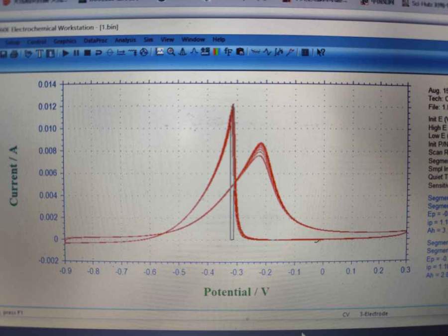 第一张图是我催化乙醇,为什么还原峰比氧化峰高啊?第二张图也是电催化乙醇,还原峰为什么是向下的呢?跪求各位大佬解惑 发自小木虫Android客户端 |