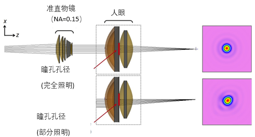 建立了由准直物镜和人眼组成的成像系统模型,通过改变光照条件,研究了全孔径照明和部分孔径照明的情况。