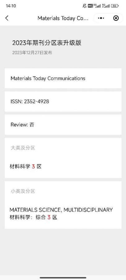 Materials Today Communications这个期刊怎么样啊? 已有1人参与
