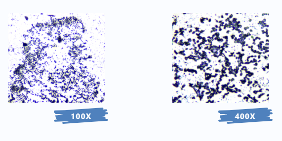 实验结果:钙沉积物呈橙红色,背景呈绿色。