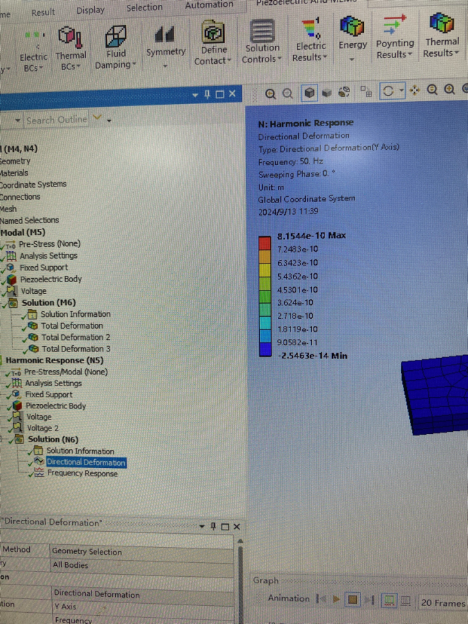 workbench中的压电片仿真,为什么我的显示结果振幅那么小,单位换成毫米也很小,电压给的110v,单片压电材料,频率50Hz,应该怎样调整,问问各位大佬 @wuming524 发自小木虫IOS客户端 |