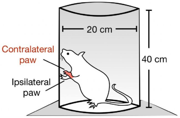 圆筒实验通常用于检测实验大鼠受损上肢的自主运动功能。圆筒实验是针对于不对称中枢神经系统疾病的研究工具,主要研究啮齿类动物在贴壁站立的过程中肢体不对称使用的情况,识别动物的感觉运动功能损伤。本实验对神经退行性疾病的模型,如帕金森,ALS,阿尔兹海默症,中风的行为学检测有重要意义。一