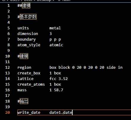 目前在尝试创建一系列的模拟,我从一个简单的水平开始。由于某种原因,我一直在用write_data命令创建数据文件。 我完全被这一点难住了,谁能告诉我为什么简单的脚本,为什么会得到错误提示: ##建模 #基本参数 units metal dimension 3 boundary p p p atom_style atomic #建模 region box block 0 20 0 20 0 20 side in create_box 1 box lattice fcc 3.52 create_atoms 1 box mass 1 58.7 #输出 write_date date1.date ERROR: Unknown command: write_date date1.date (../input.cpp:303) 发自小木虫Android客户端 |