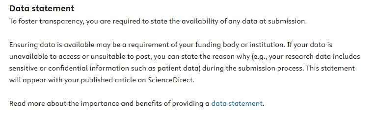 这个就是常说的data availability statement,根据你所用的数据类型,一般选择合适的数据库上传,然后把链接放在这个statement里以方便期刊和审稿人获取。 发自小木虫Android客户端 |