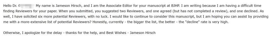9月23号投的稿,状态一直under review,昨天发邮件,说只找到一个审稿人,其他7个都declined了,让我再推荐…我又再推荐了5个,拖了我2个月,希望是好结果! 现在我接到审稿,只要不是与我的专业太远,基本上我都会接受,想不到现在找审稿人这么难 发自小木虫Android客户端 |