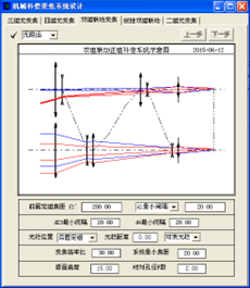 设计双组联动型连续变焦系统时只要在如图3-146的界面上选择“双组联动型变焦”即可。选择后的界面如图1所示。参数填写方式也与前类似。其中“d2最小间隔”是指个变焦组和补偿组之间间隔,“d3最小间隔”是指个变焦组或补偿组与后固定组之间间隔。在填写完以上数据之后,即可获取最后计算结果如图2所示。