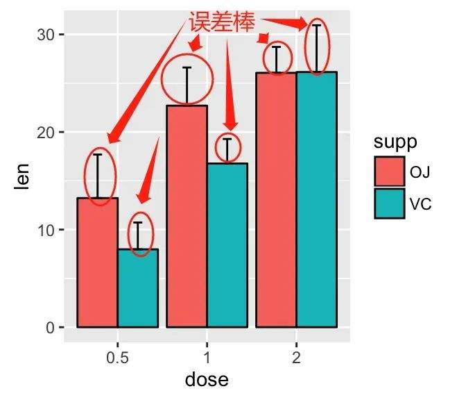 这里的柱状图分为柱状图、堆积柱状图、浮动柱状图。在解读柱状图之前,先来为大家讲讲其中的一些核心组成部分。误差棒是在柱状图中经常出现的,误差棒就是在统计图中表示误差的线段,此处有三个概念要向大家介绍,分别是标准差(sd)、标准误(se)和间接表达误差的指标置信区间。标准差实际上反映的是数据点的波动情况,标准误是均值的波动情况。而置信区间(cl)我们最常用的则是95%cl=(均值-1.96se,均值+1.96se),以下为误差棒的一些图像表示: