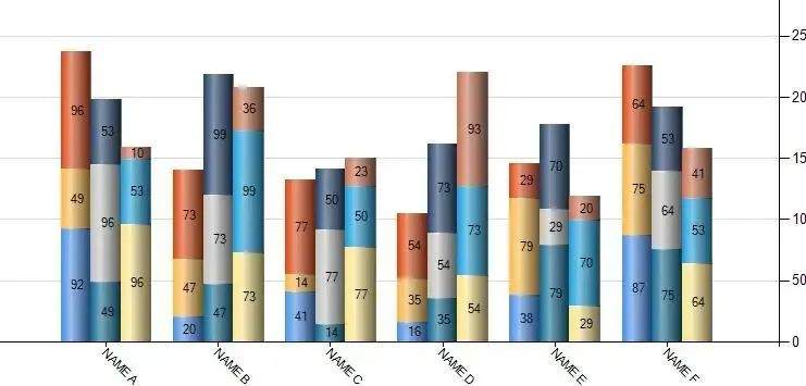 4、多维数据比较:通过在同一个柱状图中绘制不同类别和变量的柱形,可以同时比较它们的数据量、数量或频率,帮助读者理解不同变量之间的关系和差异。