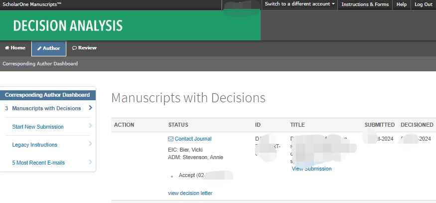 请问文章接收后,在哪里上传最终版的论文? 发自小木虫手机客户端 期刊邮件里是这样说的: Go into your Author Center where you will see "Manuscripts Accepted for First Look." Under "Action" for this paper, click on "submit updated manuscript" and follow the steps as you would during a manuscript submission process. 但我找了很久也没有发现 "submit updated manuscript" |