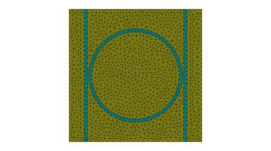 在本案例中,所有进入器件的波导具有相同的几何形状。通过环形谐振腔和两个平行波导的组装,建立二维几何结构: