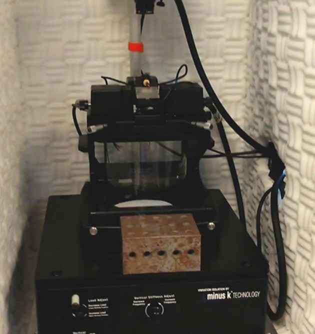 普渡大学化学系Claridge研究组选择负刚度隔振技术为其纳米级研究提供稳定性,该研究采用扫描隧道显微镜(STM)进行。STM结合了微波频率偏置调制,用于从蛋白质和其他复杂分子中提取结构信息,以优化纳米材料的性能并更好地理解膜蛋白结构。 在纳米尺度上对分子、材料和界面进行成像是纳米科学面临的一个挑战。在这些尺度上精确控制和表征界面结构可能非常困难。有机-无机界面是决定纳米材料光电性能和纳米器件性能的关键因素,也是决定跨膜蛋白质结构的关键因素。此外,层状材料通常需要采用非共价功能化策略,这使得界面的详细化学表征变得更加复杂。 Claridge研究小组 普渡大学化学系Claridge研究小组一直致力于研究和开发新的集成成像策略,以探索纳米尺度上界面有序复杂性和结构分析的极限,解决从优化纳米材料性能到理解膜蛋白结构等多方面的挑战。 该研究团队使用了多种纳米尺度的分析技术,这些技术不仅在实验室内部使用,也在部门的分析仪器中心以及普渡大学的Birck纳米技术中心进行。这些技术包括扫描探针显微术(如原子力显微镜和扫描隧道显微镜)、先进的表面分析方法(如偏振调制红外反射吸收光谱)以及大规模分子建模。 利用这些仪器技术,该研究小组的研究集中在关键的纳米结构上,包括: a) 在5–10nm尺度上对表面化学进行图案化处理——以实现与细胞膜的精确可控相互作用、提高有机光伏器件中激子的有效分离效率,以及构建分子电路,使其功能复杂性能够媲美生物学系统。 b) 开发定制的纳米尺度表面分析仪器——以实现分子尺度上的化学成像和表征在亲水-疏水平衡界面上发生的动态过程,这些界面与纳米材料和生物学相关。 c) 生物分析技术的非传统应用——包括表征纳米尺度上的各向异性润湿现象,这些现象类似于生物系统中的水和离子传输过程。 d) 将分子建模与先进的界面表征技术相结合——开发对非共价组装界面的详细预测性理解,特别是那些由具有重要技术应用的层状材料(如石墨烯)组成的界面。 图1 在高度取向热解石墨(HOPG)上成像的二炔磷脂醇胺两亲分子(dPE) 成像肽内的纳米级生物单层和双层结构 Claridge研究小组还开展了关于新型可聚合两亲分子(如肽和其他分子)的合成研究,这些分子对层状材料的非共价功能化非常有用。 两亲分子是具有亲水性和疏水性两种性质的化学化合物,是化学和生物化学多个研究领域的重要基础。肽类两亲分子是以肽为基础的分子,能够自组装成高长宽比的纳米纤维,并且可以组合成各种超分子结构。 “我们小组使用扫描隧道显微镜(STM)和原子力显微镜(AFM)来成像小的生物单层和双层结构,通常是在肽内,肽是构成蛋白质的核心组件,” Claridge研究小组的大卫·G·麦克米伦说。“这些结构尚未被充分理解。我们试图更好地了解这些结构的实际化学组成和行为,在大约7到14nm的尺度上,这些物质很难结晶,因此很难获得它们的晶体学数据,而晶体学数据通常是用于表征如此小尺度结构的主要方法。” “我们小组的一个主要研究方向是设计定制的扫描探针仪器,以在亚纳米尺度上提供单分子内的结构分辨率,”麦克米伦补充道。“这尤其适用于我们自制的STM。通过在隧道结处引入偏压调制和其他定制模式,我们可以从与分子电子学和人类健康相关的蛋白质和其他复杂分子中提取结构信息。” 扫描隧道显微镜(STM) 扫描隧道显微镜基于量子隧穿的概念。当导电的探针非常接近被检测的表面时,施加在两者之间的偏压(电压差)可以使电子通过它们之间的真空隧穿。隧穿电流取决于探针的位置、施加的电压以及样品的局部态密度。 通过监测探针在表面上扫描时的电流变化来获取信息,并通常以图像形式显示。STM是一项具有挑战性的技术,因为它要求极其干净和稳定的表面、尖锐的探针、复杂的电子设备以及出色的振动控制。 对于STM而言, 0.1nm的横向分辨率和0.01nm的深度分辨率被认为是良好的分辨率。凭借这种分辨率,材料中的单个原子可以被常规地成像和操控。STM不仅可以在超高真空中使用,还可以在空气、水和其他各种液体或气体环境中使用,并且可以在从接近零开尔文到几百摄氏度的温度范围内工作。 图2 Agilent Pico 5500原子力显微镜在Minus K BM-10隔振台上扫描4微米 “ 扫描隧道显微镜通过精确控制一个原子级尖锐的金属探针在样品上扫描,保持探针与样品之间1nm的距离,提供原子或分子级别的分辨率成像,”麦克米伦继续说道。“反馈基于10皮安(pA)的隧穿电子电流,即使探针与样品之间的距离变化仅为0.1nm,也会导致隧穿电流的显著变化。因此,尽管仪器设计旨在最大化刚性并最小化热漂移,但减少振动、声学噪声和电气噪声以及热漂移都是至关重要的。” “振动和低频声学噪声尤其关键,因为测量信号——即探针在表面上扫描过分子时探针高度的变化——包含频率范围为10至400Hz的成分。”麦克米伦解释道。 振动对STM成像的影响 要实现这些小型生物单层和双层结构的化学组成和行为的纳米级成像,要求STM必须放置在一个超稳定的操作环境中,该环境应避免周围低频振动的干扰。 “我们的实验室位于一栋钢筋混凝土建筑的四楼,采用柱梁设计,”麦克米伦说。“为了确保化学实验室的安全,需要安装大型空气处理设备,这给建筑结构带来了显著的振动。建筑物始终在