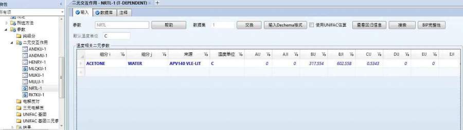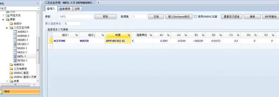 Aspen吸收塔NRTL模型计算活度系数