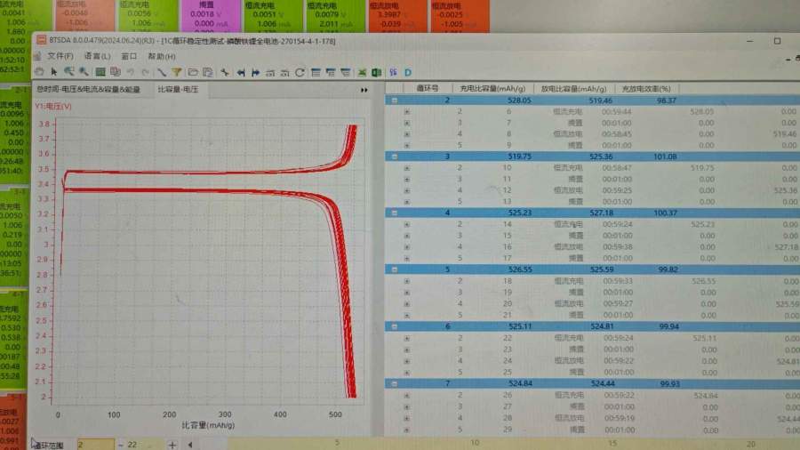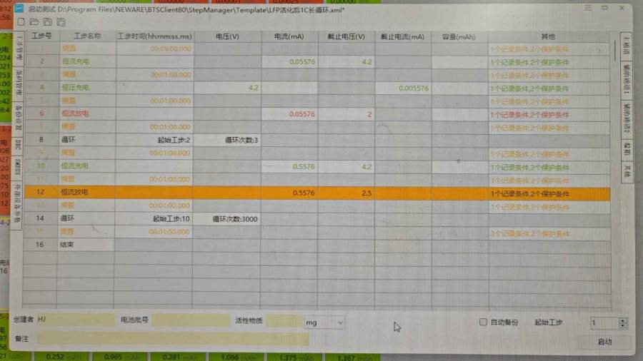 友友们,为什么我测试的磷酸铁锂扣电全电池容量达到了 500 多,下面是测试工步,实在找不到原因了