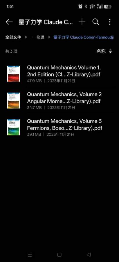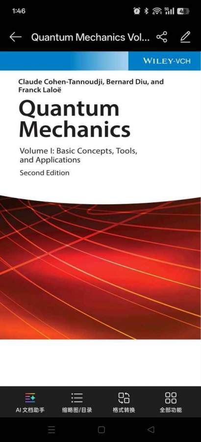 最近缺全币,想发点不错书,发现发不了。没有上传的选项。 我用夸克网盘分享了「Quantum Mechanics Volume 1, 2nd Edition (Claude Cohen-Tannoudji, Bernard Diu etc.) (Z-Library).pdf」,点击链接即可保存。打开「夸克APP」在线查看,支持多种文档格式转换。 我用夸克网盘分享了「Quantum Mechanics, Volume 3 Fermions, Bosons, Photons, Correlations, and Entanglement (Claude Cohen-Tannoudji, Bernard Diu etc.) (Z-Library).pdf」,点击链接即可保存。打开「夸克APP」在线查看,支持多种文档格式转换。 我用夸克网盘分享了「Quantum Mechanics, Volume 2 Angular Momentum, Spin, and Approximation Methods (Claude Cohen-Tannoudji, Bernard Diu etc.) (Z-Library).pdf」,点击链接即可保存。打开「夸克APP」在线查看,支持多种文档格式转换。 链接:https://pan.quark.cn/s/41aa012391b2 链接:https://pan.quark.cn/s/70754c6e29b4 链接:https://pan.quark.cn/s/78c5ba2d14c9 发自小木虫手机客户端 |