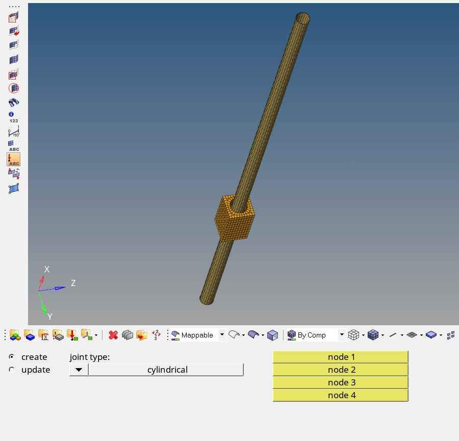怎么在hypermesh创建圆柱形铰接平移移动副
