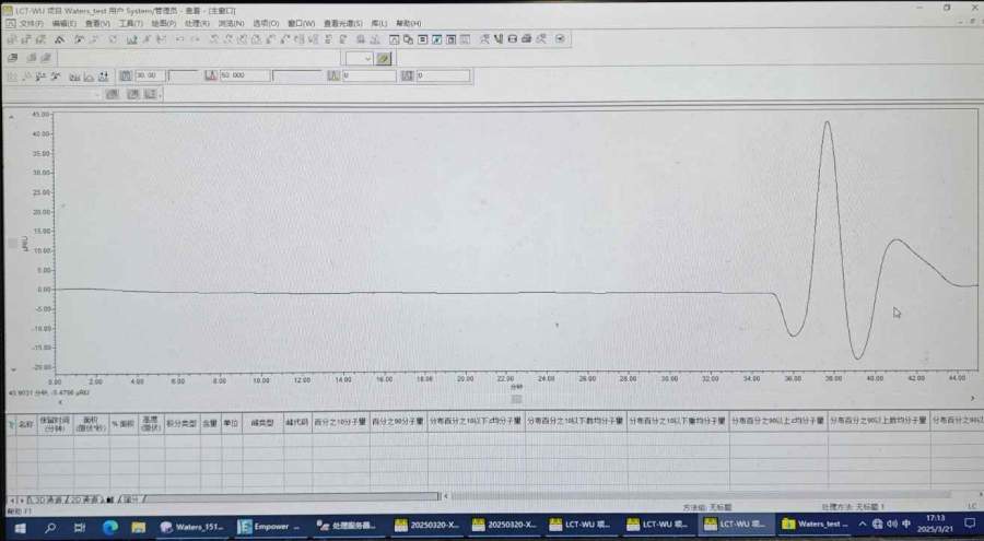 本人方向高分子合成,最近合成了与文献结构类似的高分子,只是侧链带电荷,想求助一下各位虫友,如何测试可以测出来聚合物的分子量 本人已经用核磁表征结构正确,聚合物只溶解在大极性溶剂中比如甲醇,DMF,DMSO等。也已经尝试了静态光散射,GPC,水相GPC,madil-tof等方法,但是确实都没有峰,所以想请教一下大家 附图是DMF相的GPC。 发自小木虫手机客户端 |