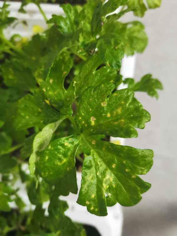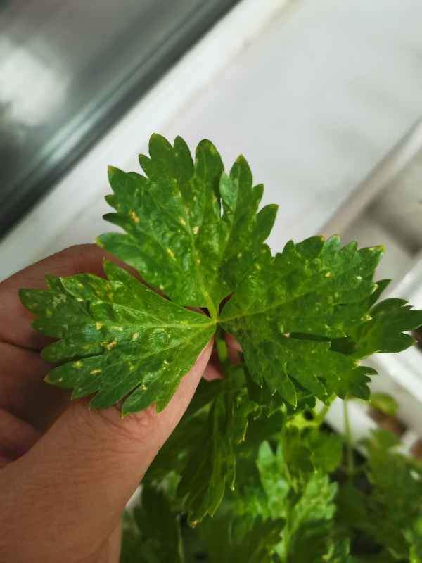 在网上买了几颗根芹苗,长势感觉不错,但是不知道为什么,叶子上有斑点,是病虫害还是什么情况? 发自小木虫手机客户端 |
