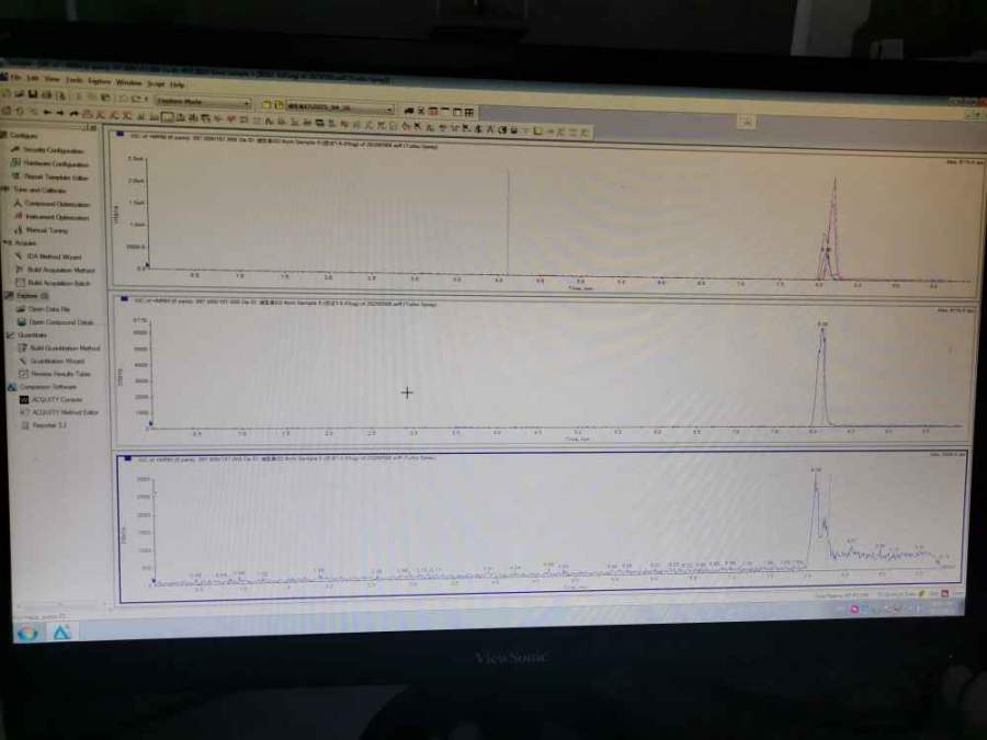 用液质联用检测维生素,标曲测试中,维生素D2定性子离子147总是出双峰,且双峰中对应D2的峰面积和响应很小,信噪比也很小,标曲浓度越小双峰越严重,大浓度好些,但拖尾。(标曲0.01ug/ml,0.02ug/ml,0.05ug/ml,0.1ug/ml,0.15ug/ml,0.2ug/ml)请各位大佬指教 发自小木虫手机客户端 |