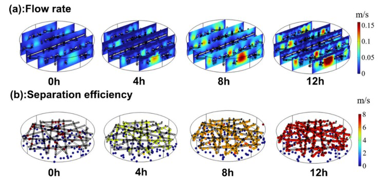几何设置:外部为一个空心圆柱体(模拟流动通道,水自上而下) ,中间区域为随机分布的细长圆柱体,代表纳米纤维;将通过在纤维表面添加球状结构模拟不同修饰程度。随着亲水颗粒修饰程度的增加,膜的亲水性增强但孔隙结构变小,因此理论上:水的流速先增强后下降。有什么方法,可以实现膜的亲水性增强?下图一个是我做的,一个是我想复现的 发自小木虫IOS客户端 |