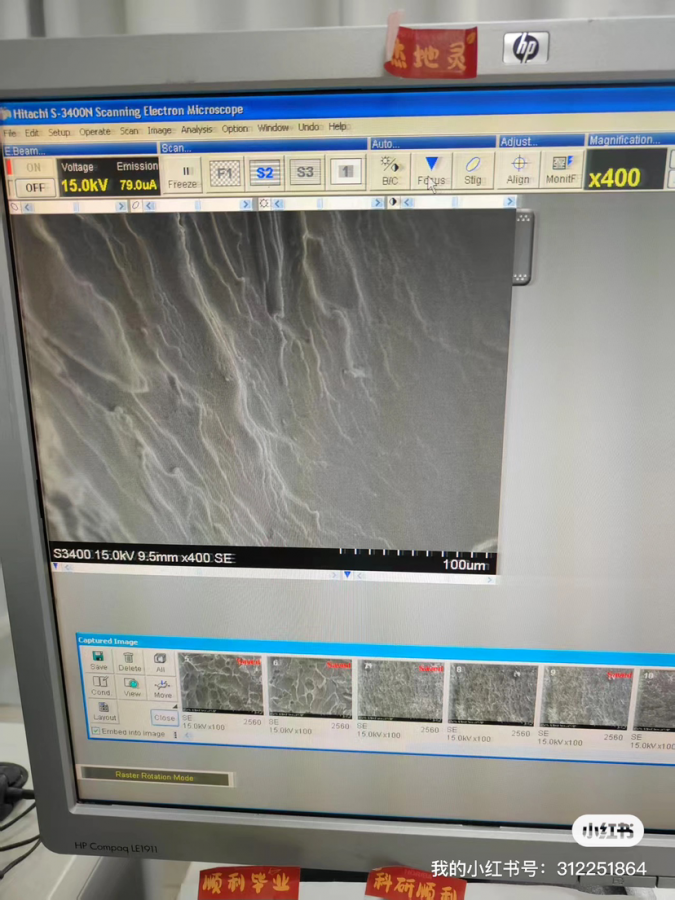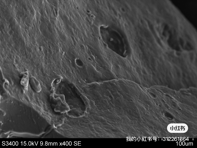 图一是别人给凉皮真空冷冻干燥后拍的电镜,二三四五是自己拍的电镜图片,发现凉皮根本没有孔洞结构,观测不出凉皮加了亲水胶体后的微观变化,有点怀疑是凉皮表面刷了油脂的原因。因为事关毕业论文,身边没有人做过这样的实验,特寻求互联网大佬 发自小木虫IOS客户端 |