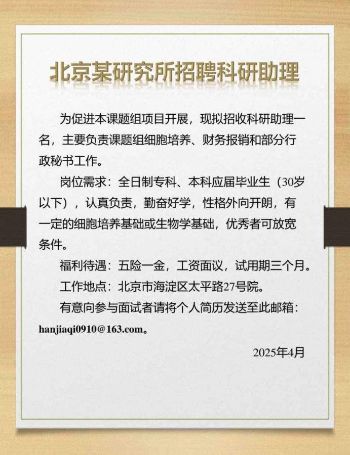 五险一金,周末双休,带薪年假。稳定后包住宿 发自小木虫手机客户端 |