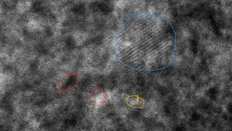 拍出来的高分辨的图片基本都是这样,感觉一块黑一块白(红色圈),这些区域都不是很清楚,是厚度的原因吗?还是带轴不正。 还有如黄色圈,感觉在正常的黄色箭头 所画晶面之间还有一排原子,也是厚度的原因吗? 蓝圈是一个析出相,感觉采正基体时,他和基体无衬度区别,原子排列也变化不大,当采正第二相时,衬度和原子排列有区别了,但基体就很模糊,是不是只有多拍去找恰好两相带轴在一条线上的地方,才能拍出较好的既有区别又两边都清楚的图片,还是有没有什么拍摄技巧。 发自小木虫手机客户端 |