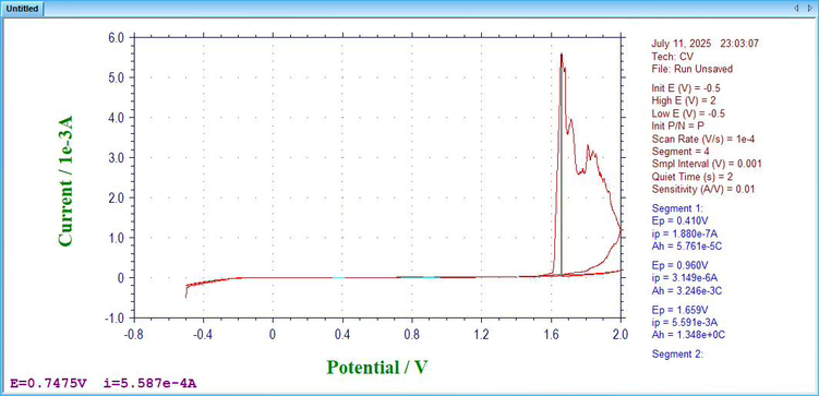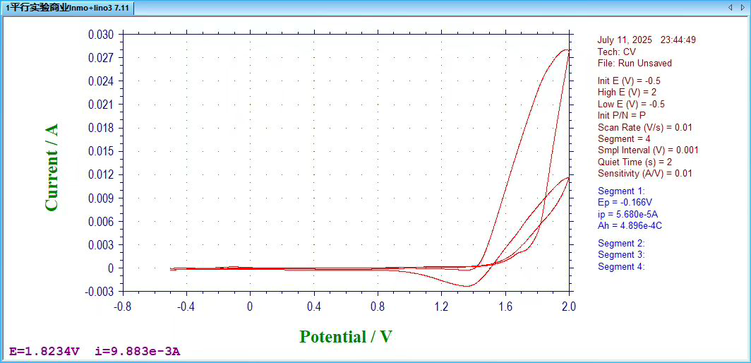 商业的镍锰酸锂比例是 8:1:1,在饱和的硝酸锂溶液中进行 cv 测试没有峰,这是什么情况? 发自小木虫IOS客户端 |