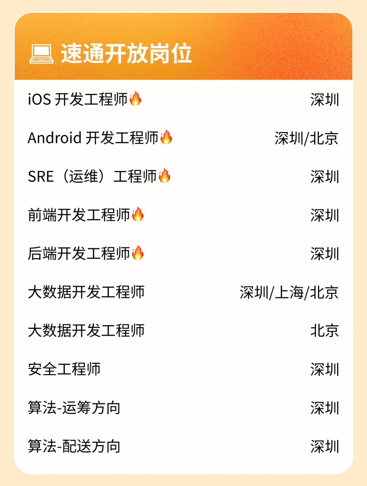 Shopee研发中心2026届校园招聘正式启动! 招聘对象:2025年9月1日至2026年8月31日毕业的海内外高校同学 网申时间:2025年7月15日至11月30日 工作地点:北京市、上海市、深圳市 网申链接:https://app.mokahr.com/m/campus- ... sh=%23%2Fjobs#/jobs 重要!!!!部分岗位已开放校招“速通”,流程更快🏃🏻♀ 欢迎加入就业交流QQ群 Shopee虾皮26届内推交流群:722125910 25届大厂内推交流群2:115790925 26届大厂内推交流群3:992830429 博士内推求职交流群:571203152 网易游戏互娱26届校招内推群:471589584 |