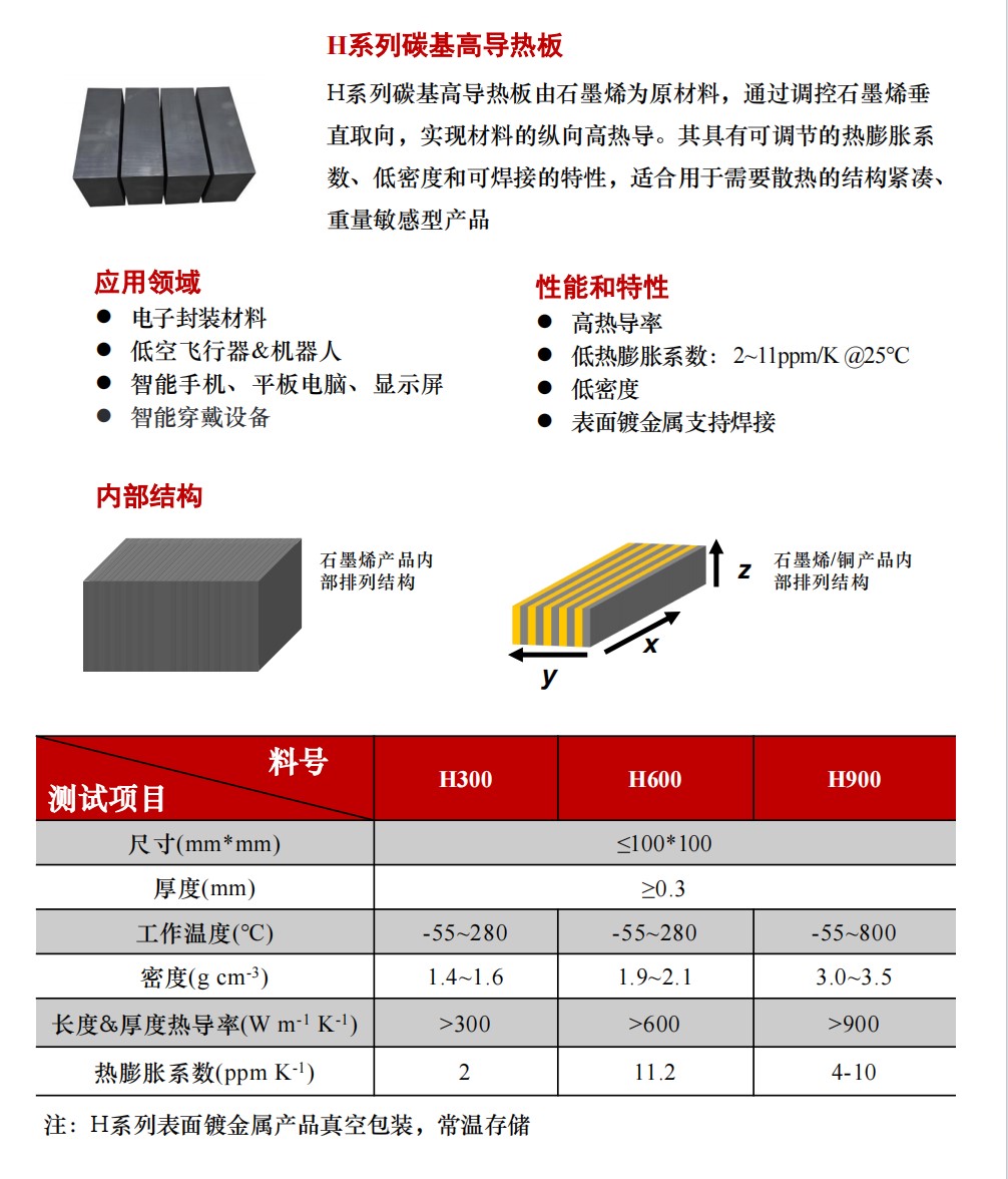 碳基高导热板 >800 W/mK密度 <2g/cm³200℃老化1000h性能保持率>95%
