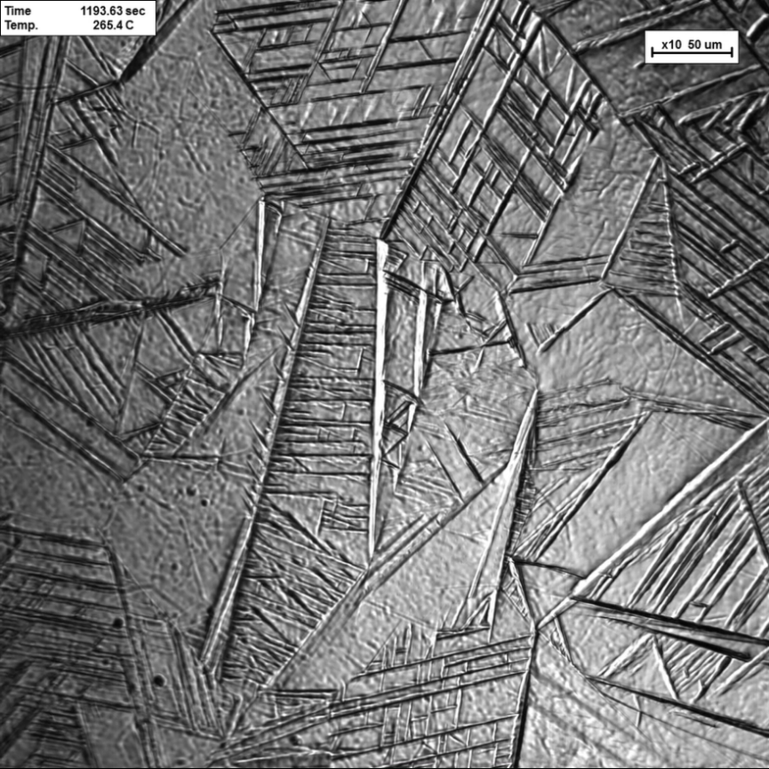 使用高温共聚焦显微镜(VL3000DX-SVF18SP)原位观察马氏体的形成
