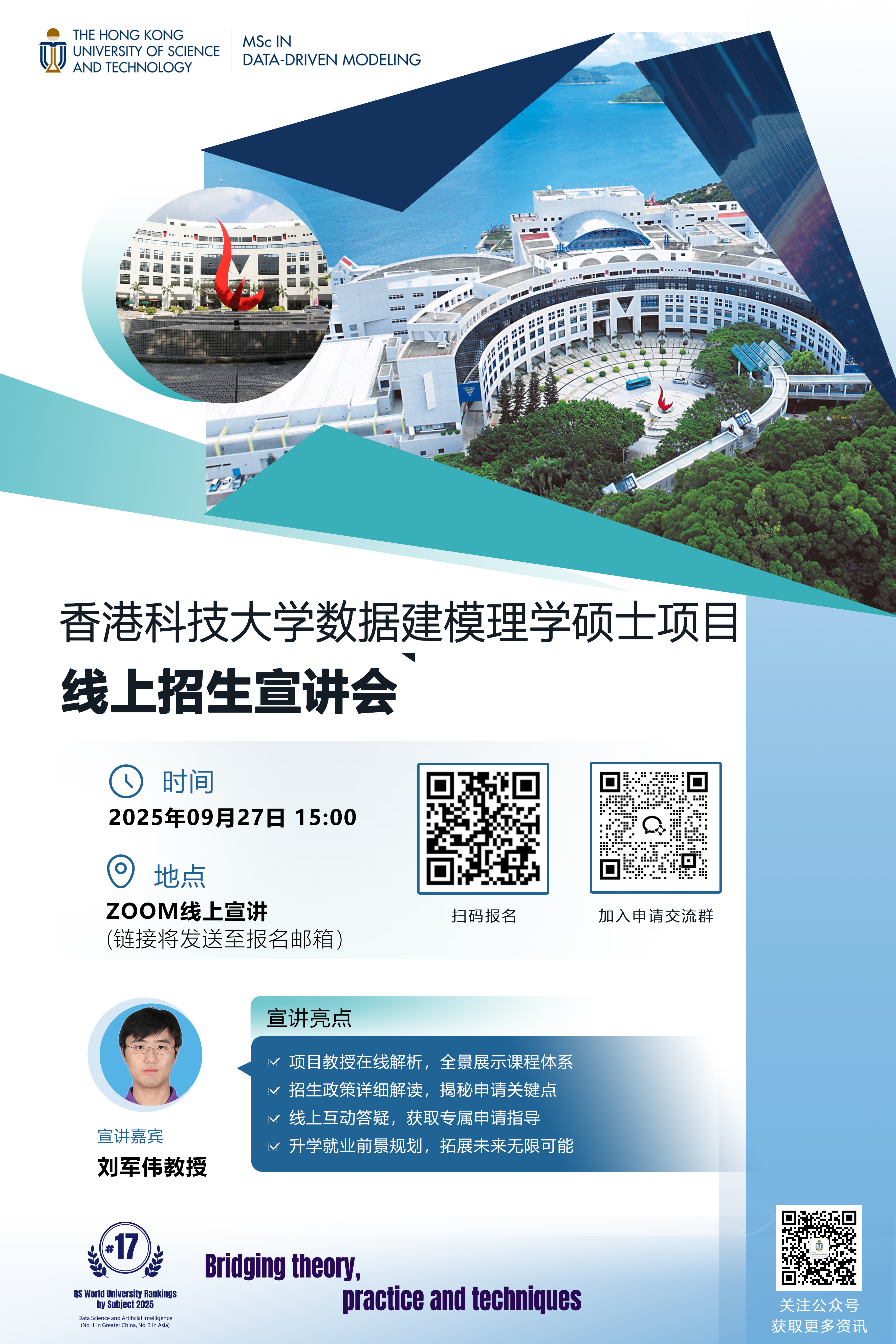 香港科技大学数据建模MSc(DDM)硕士学位项目26/27招生宣讲会-线上专场