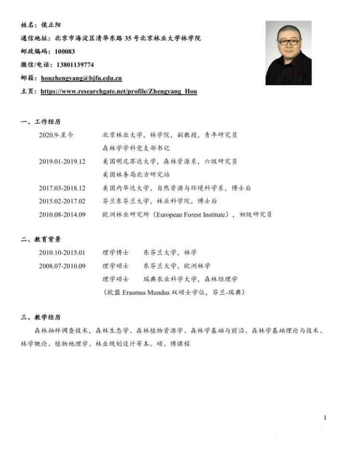北京林业大学林学院 侯正阳课题组 诚招博士研究生!