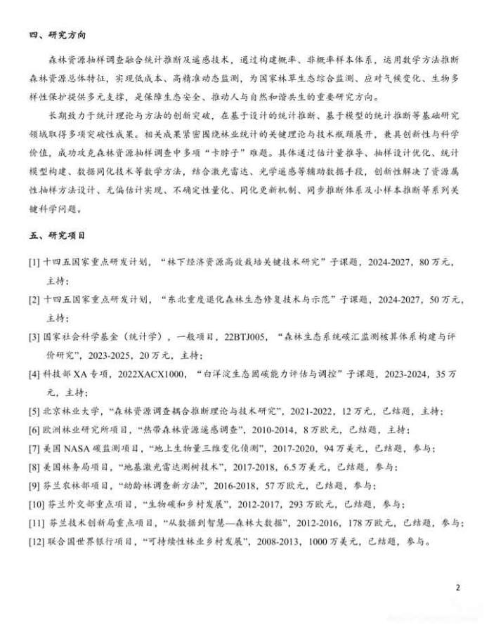 北京林业大学林学院 侯正阳课题组 诚招博士研究生! 课题组简介 导师:侯正阳,副教授,青年研究员,森林学学科党支部书记。 国际背景:拥有芬兰东芬兰大学博士学位、欧盟erasmus mundus双硕士学位(芬兰+瑞典),并曾于美国明尼苏达大学、内华达大学及欧洲林业研究所从事多年研究与博士后工作。 科研实力:长期聚焦森林资源调查、统计推断与遥感技术融合研究,主持国家十四五重点研发计划子课题、国家社科基金(统计学)等多个国家级项目,参与多项欧美大型科研计划(如nasa碳监测、美国林务局项目、芬兰重点研究项目等)。 研究方向:重点围绕数学统计方法(抽样设计、估计量推导、模型构建、数据同化、不确定性量化)与激光雷达/光学遥感技术相结合,致力于解决森林资源动态监测、碳汇评估、生物多样性保护等关键科学问题,服务于国家林草生态监测与碳中和战略目标! 我们希望您具备 · 专业背景:已获得或即将获得硕士学位,专业为数学、统计学及相关领域; · 科研素养:扎实的数理统计基础,良好的逻辑思维与数据分析能力,熟悉r/python等编程工具; · 研究兴趣:对数学及统计在生态、环境与遥感等领域的应用具有浓厚兴趣,具备独立探索能力与科研责任感; · 招生类型:推免直博、公开招考博士生名额开放,欢迎有志于深入科研的优秀学子加入! 加入我们,您将 1. 参与国家级重点课题,立足森林遥感与统计交叉学科前沿; 2. 系统掌握高级统计建模、抽样理论、遥感数据处理等核心研究方法; 3. 面向国家林草生态监测与碳汇核算等重大需求开展具有实际影响力的研究; 4. 依托导师广泛的国际合作网络,拓展国际学术视野,有机会参与海外交流与研究; 5. 融入北京林业大学林学院优质平台与青年pi团队,获得全面的科研支持与学术指导。 申请方式 有意者请将以下材料发送至导师邮箱:houzhengyang@bjfu.edu.cn · 个人简历(含教育背景、科研经历与成果等) · 成绩单 · 代表性论文或研究报告(如有) · 邮件主题请注明:【博士申请-姓名-毕业院校-专业】 · 微信咨询(请备注姓名+学校+专业):13801139774(或通过邮箱联系) 我们期待对统计与森林生态遥感怀有热忱的青年科研人才加入,共同以数据科学与先进技术守护绿水青山! #博士生招聘 #博士申请 #北京林业大学 #森林遥感 #统计生态 #碳汇监测 #科研团队 #学术平台 发自小木虫手机客户端 |