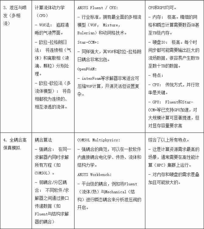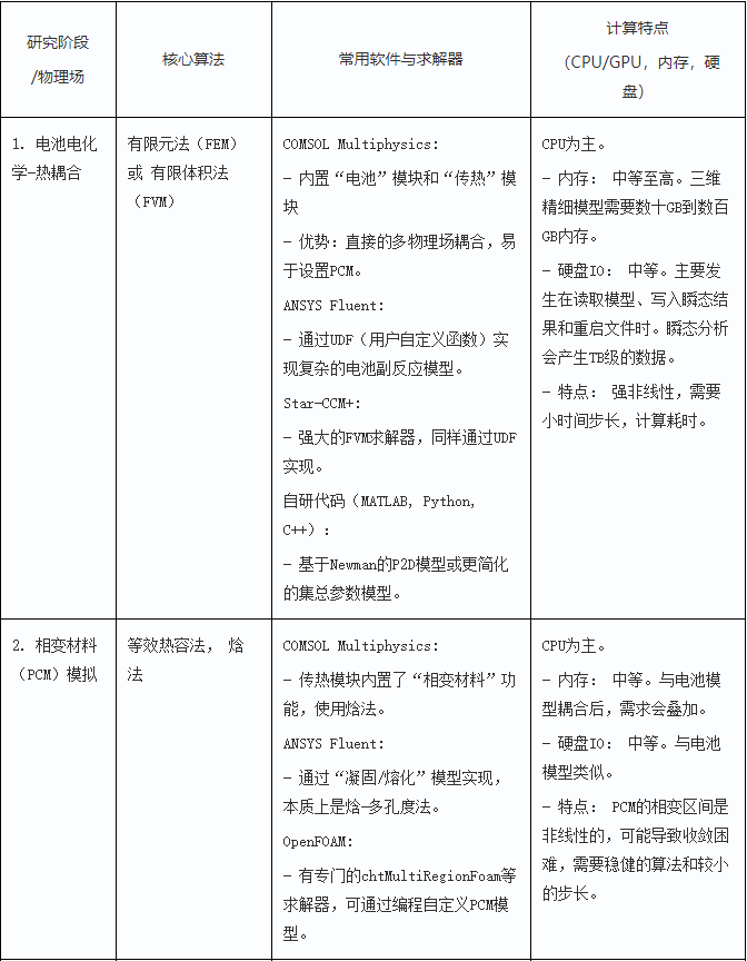 高端: 精细的电池内部电化学模型或泄压喷发的CFD模型(千万至上亿级网格),需要数百GB到TB级别的内存。HPC集群是必须的。