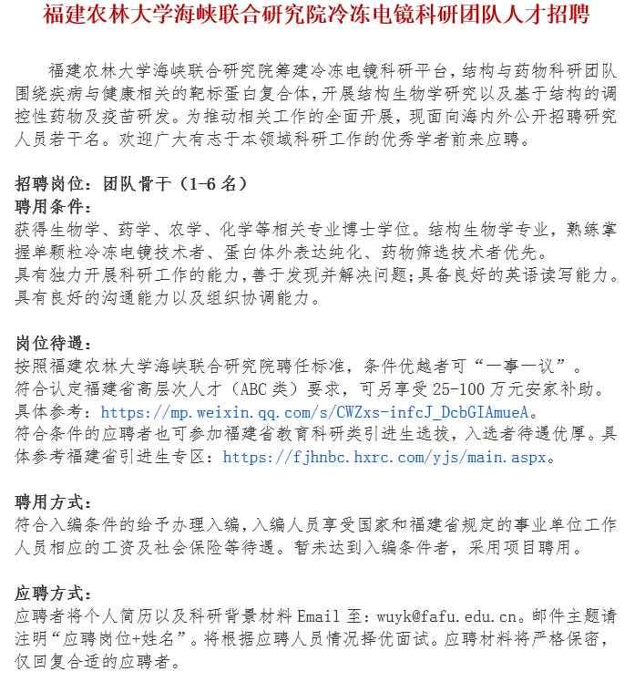 福建农林大学海峡联合研究院冷冻电镜科研团队招聘骨干人员! 发自小木虫手机客户端 |
