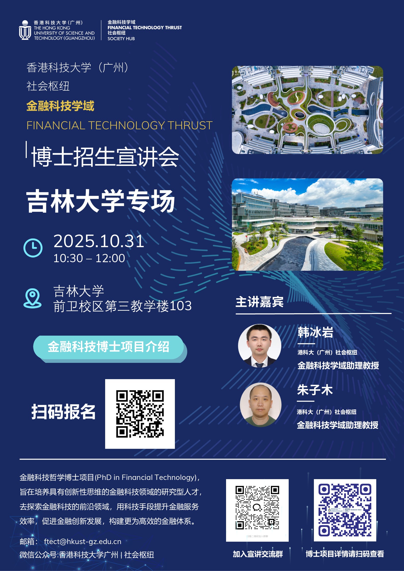 香港科技大学广州|金融科技学域博士招生宣讲会—吉林大学专场