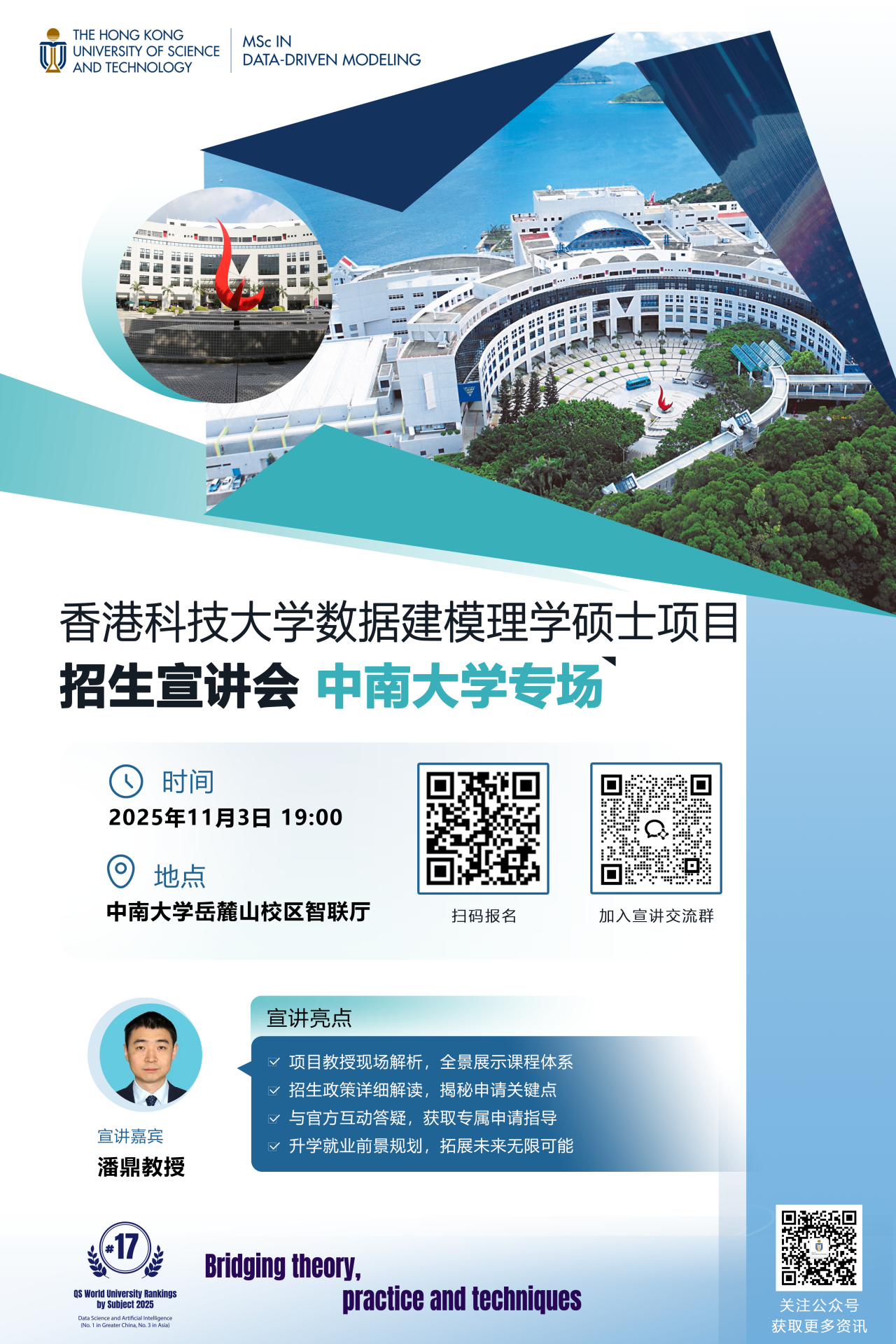 香港科技大学数据建模MSc(DDM)硕士学位项目26/27招生宣讲会-中南大学专场