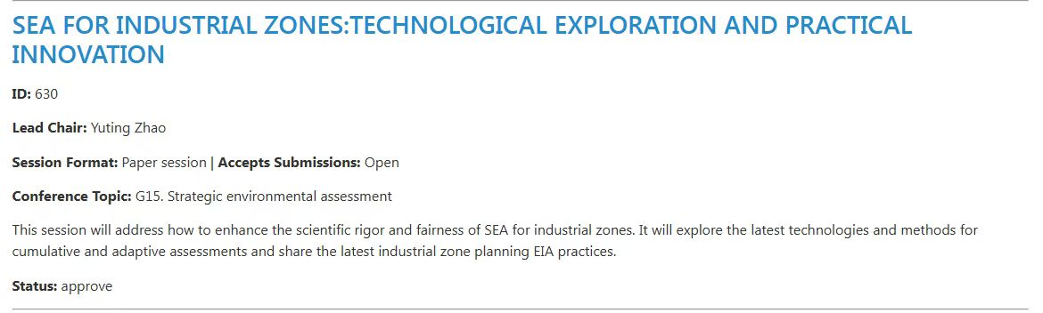 大家好,国际环境影响评价协会(IAIA)明年在加拿大魁北克举办IAIA26会议,我们研究团队申请了1个分会,主题是有关园区规划环评的,大家感兴趣的欢迎投稿参加汇报。