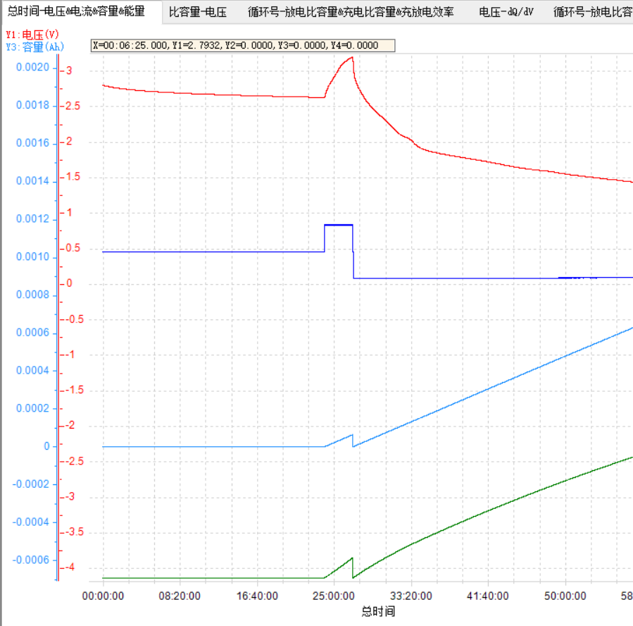 各位大佬前辈们,我现在在使用一种醌类物质作为锂离子电池正极,我设置的工步是0.1C活化两圈,然后1C进行长循环,电压范围1.4-3.2V,可是我在前两圈活化的过程中发现,第一圈放电活化时迟迟无法达到规定的电压,请问是什么问题呢?是我的0.1C电流密度用于活化太小了吗? |