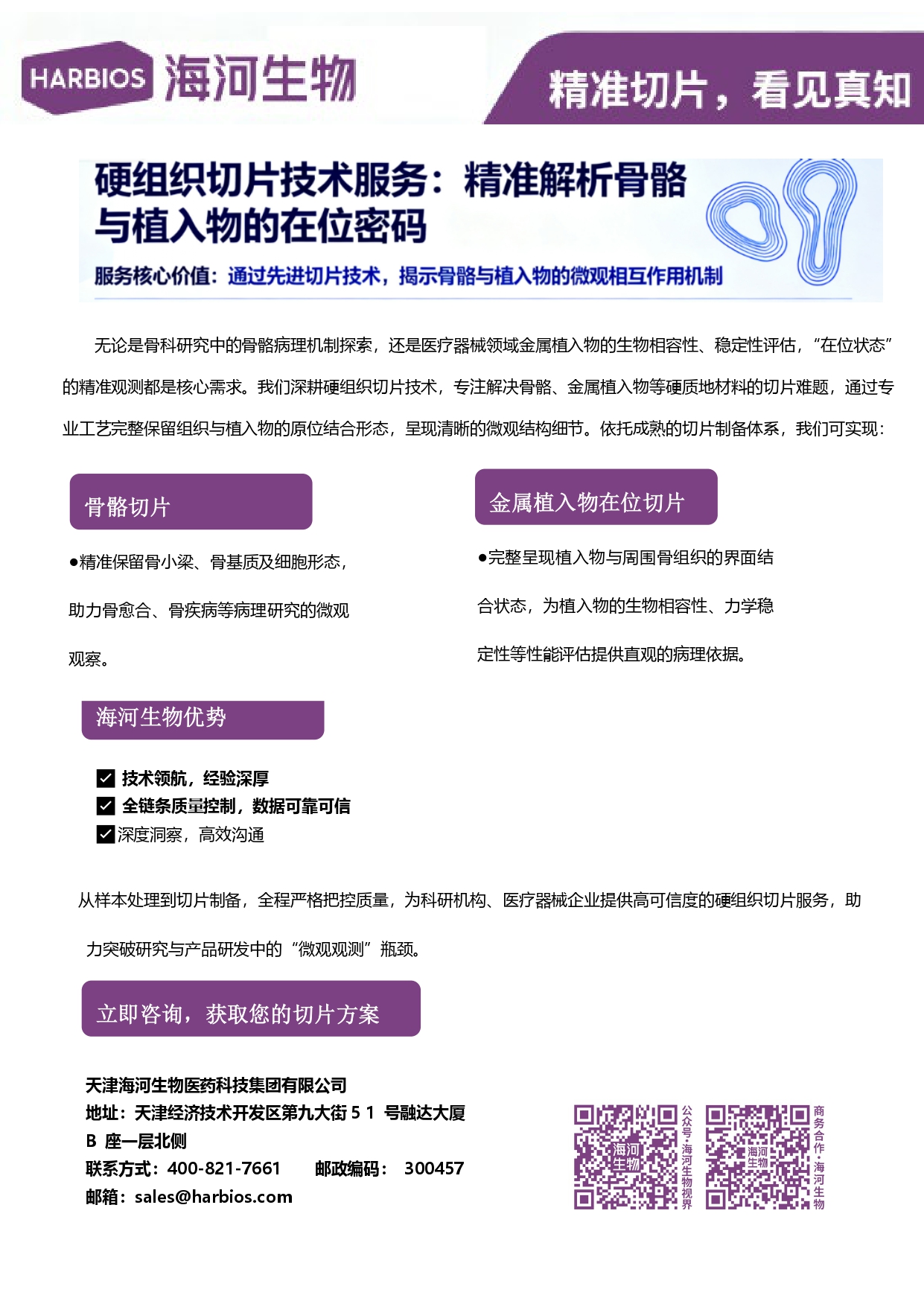大家好! 最近在实验过程中遇到一个难题:在做骨组织与金属植入物结合的病理观察时,总是难以获得清晰、完整的原位切片。植入物容易脱落,骨小梁结构也经常破损,导致微观结构观察效果不理想。 后来了解到有一种硬组织切片技术,专门针对骨骼、金属植入物等硬质材料,能够完整保留植入物与骨组织的结合界面,同时保持骨小梁、骨基质等微观结构的完整性。这对于评估植入物的生物相容性、骨愈合机制等研究非常有帮助。 不知道有没有虫友做过这类切片?有没有推荐的技术服务方或者实验方案? 我最近接触到一个叫海河生物的团队,他们在这方面似乎有比较成熟的经验,从样本处理到切片制备全程质量控制,据说数据可信度较高。不过还在犹豫是否尝试。 欢迎大家交流经验或推荐靠谱的技术平台!如果有相关案例或切片效果图也欢迎分享~ |