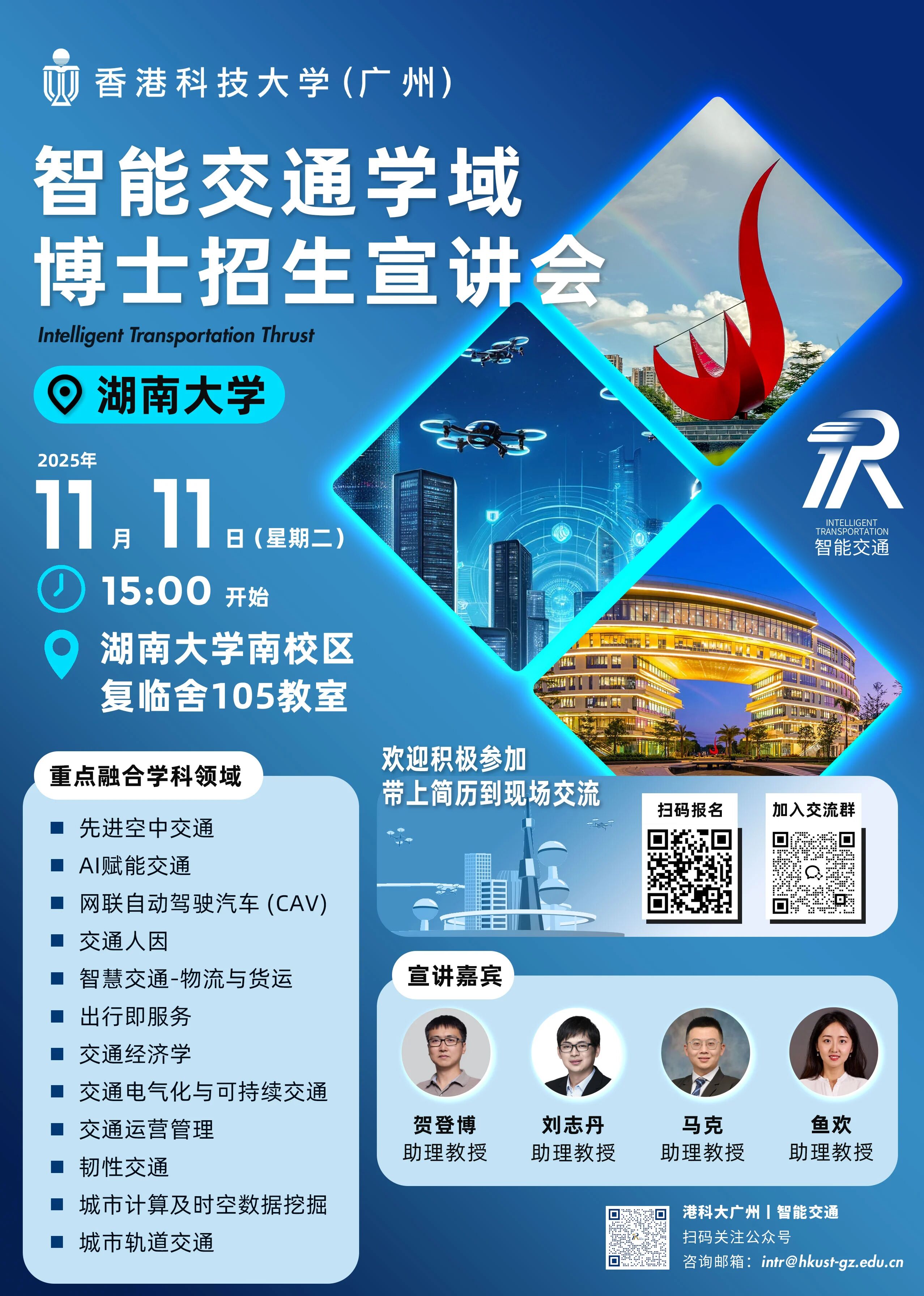 香港科技大学广州|智能交通学域博士招生宣讲会—湖南大学专场(本研可申)