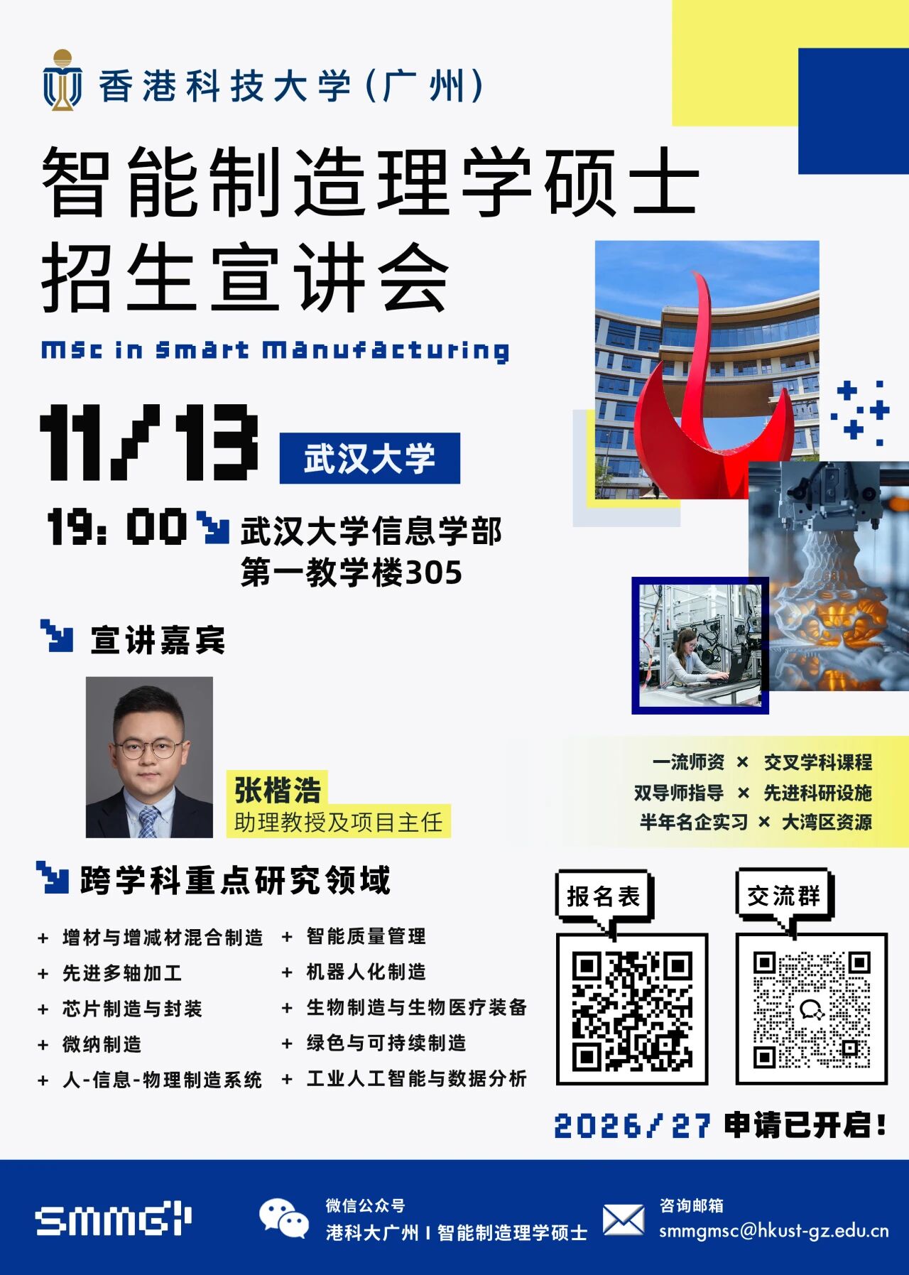 香港科技大学广州|智能制造理学硕士学位项目招生宣讲会—武汉大学专场!!