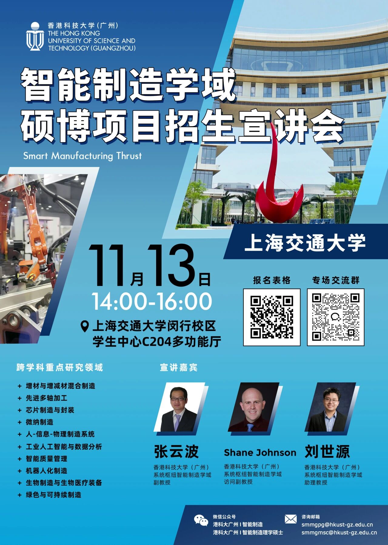 香港科技大学(广州)智能制造学域硕博招生宣讲会—上海交通大学专场(本硕可申)