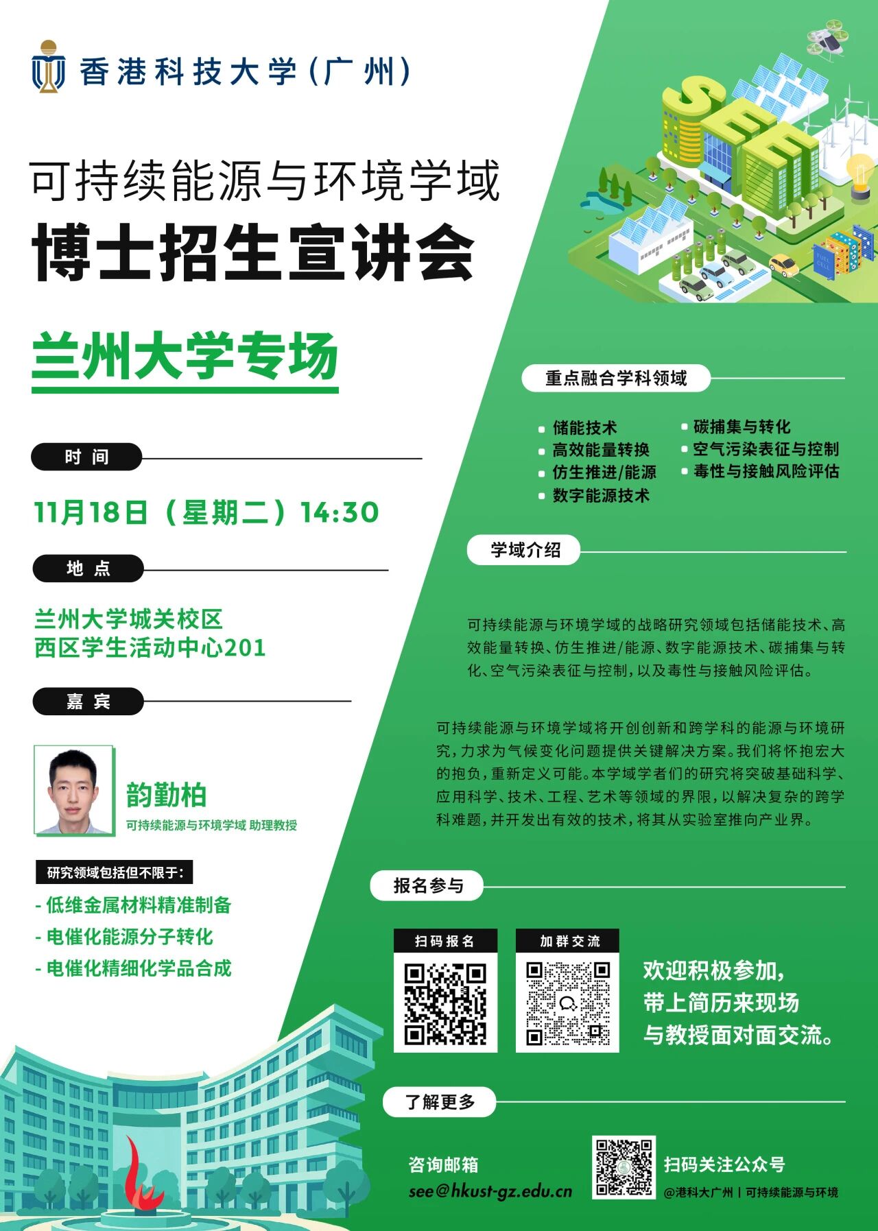 香港科技大学广州|可持续能源与环境学域博士招生宣讲会—兰州大学专场!!!