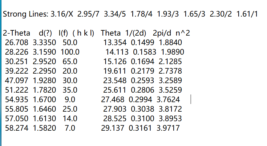 求大佬是否有Cu0.4In0.4Zn1.2S2 PDF#32-0340,需要带晶面的数据。Jade没有标出。