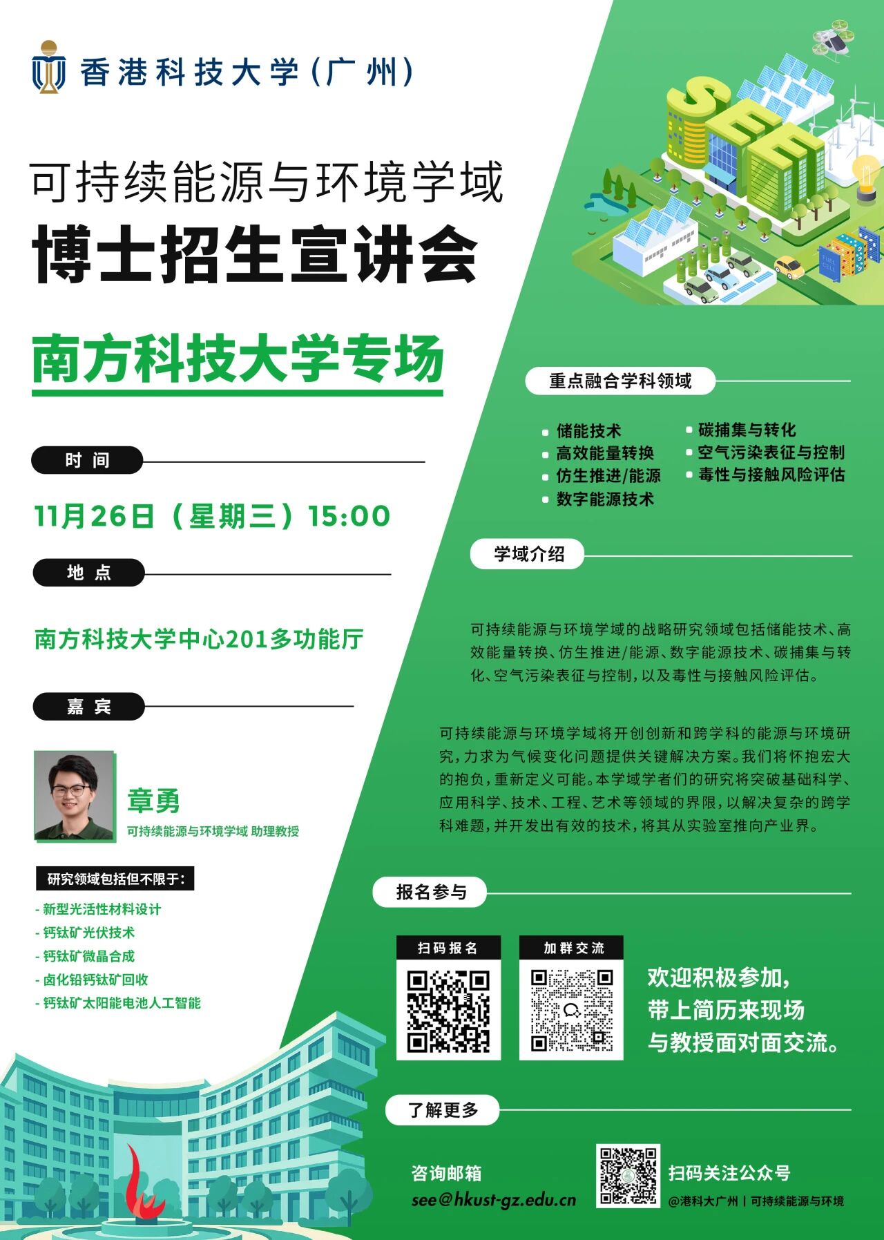 香港科技大学广州|可持续能源与环境学域博士招生宣讲会—南方科技大学专场