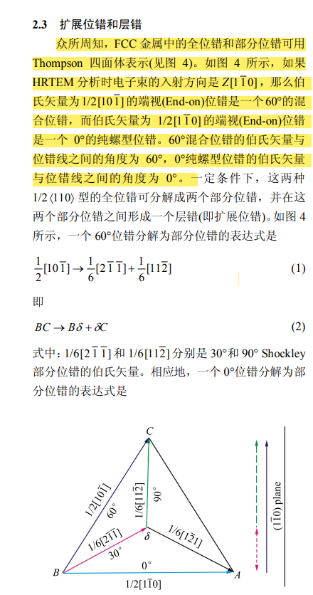 文献中,为什么沿110晶带轴入射,另一个位错是60°全位错那?端视位错是怎么定义的?