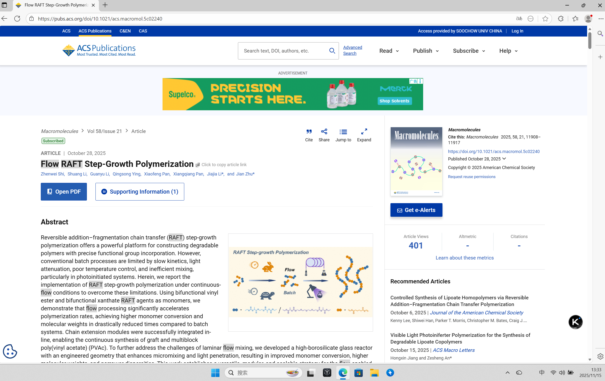 恭喜苏州大学朱健团队应用布瑞利斯光催化设备在国际期刊发表论文:流动RAFT逐步聚合
